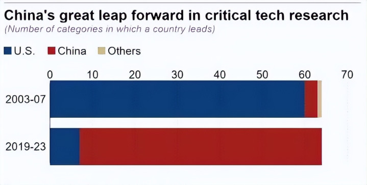说起中美科技这事儿,很多人还停留在老印象里,以为美国永远是老大,中国还在追赶。但你翻开数据一看,哎呀,这差距拉得可不小了。2003年那会儿,一份评估显示美国在64项关键技术里独占60项,占了94%,中国呢?就仨领域有点优势,勉强5%。
